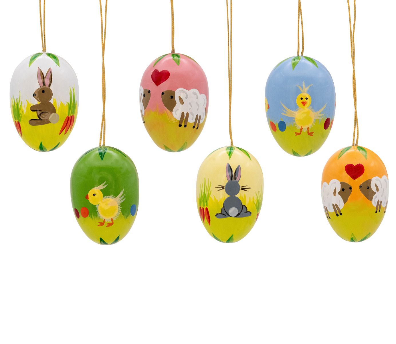 6 verschiedene Ostereier a) 24x24x35 mm im Satz, Ostereier sind aus Buchenvollholz gedrechselt und handbemalt, Neuheit 2025, Original erzgebirgische Handarbeit, Nur erhältlich direkt bei uns oder einem im Fachhandelsring registrierten Fachgeschäft der erzgebirgischen Volkskunst.